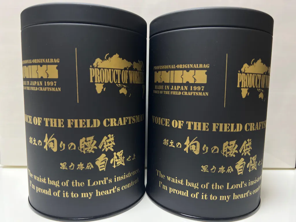 A steel can with a gold logo printed on a matte black can, it can be used for various purposes such as storing materials and storing small items.