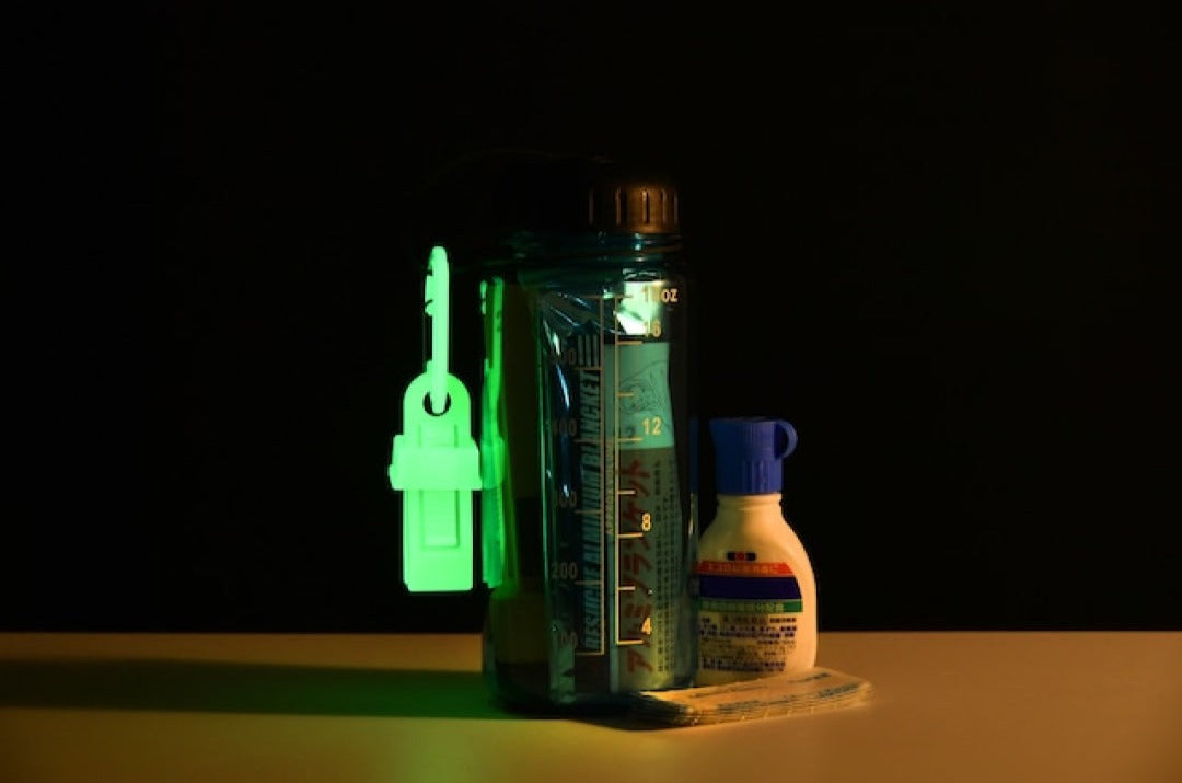 太陽光や蛍光灯から蓄光し、周囲が暗くなってきたら発光する性質を持っています。夜間のアウトドアや災害時に特に活躍します。