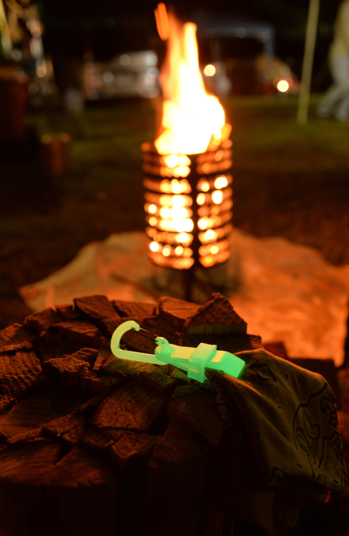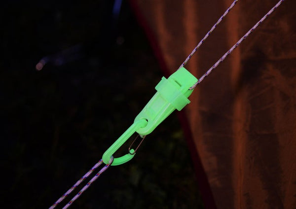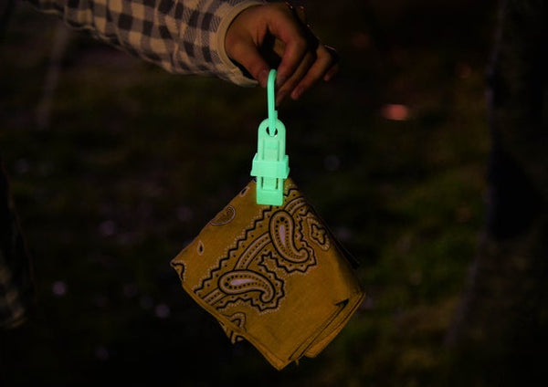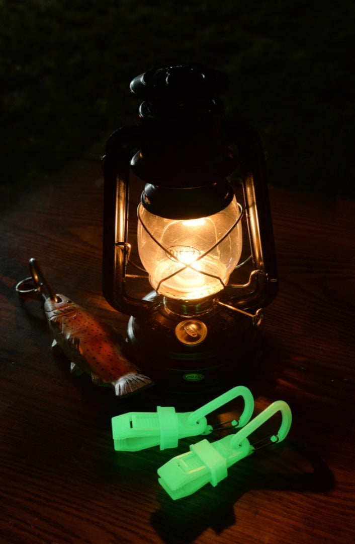 自ら優しく光ることで、暗所で視認性を高めるカラビナクリップ。
