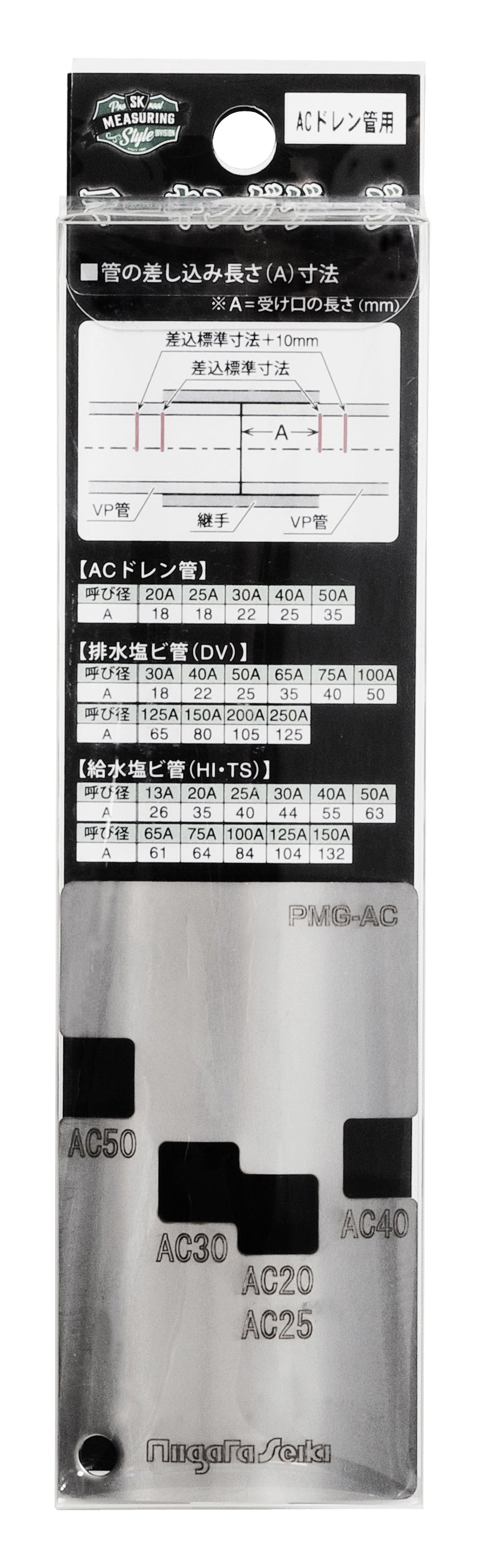 | PMG-AC/ACドレン管用 | ACドレン管(給水塩ビ管)の継手差込長さと確認線のケガキゲージに |