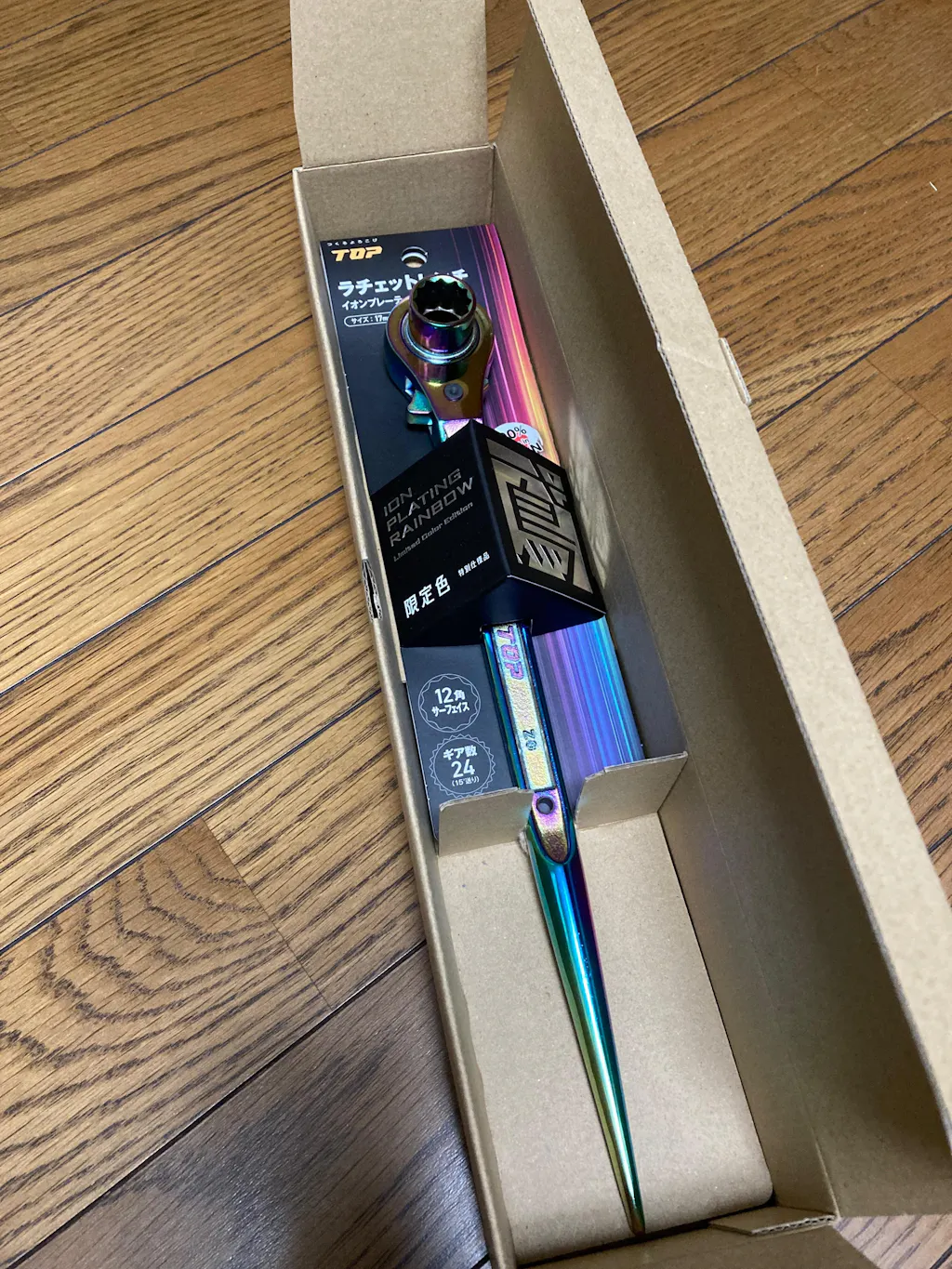 TOP Industrial Double-Ended Ratchet Wrench, Ion-Plated Rainbow Color, RM-17X21N-ST-RA