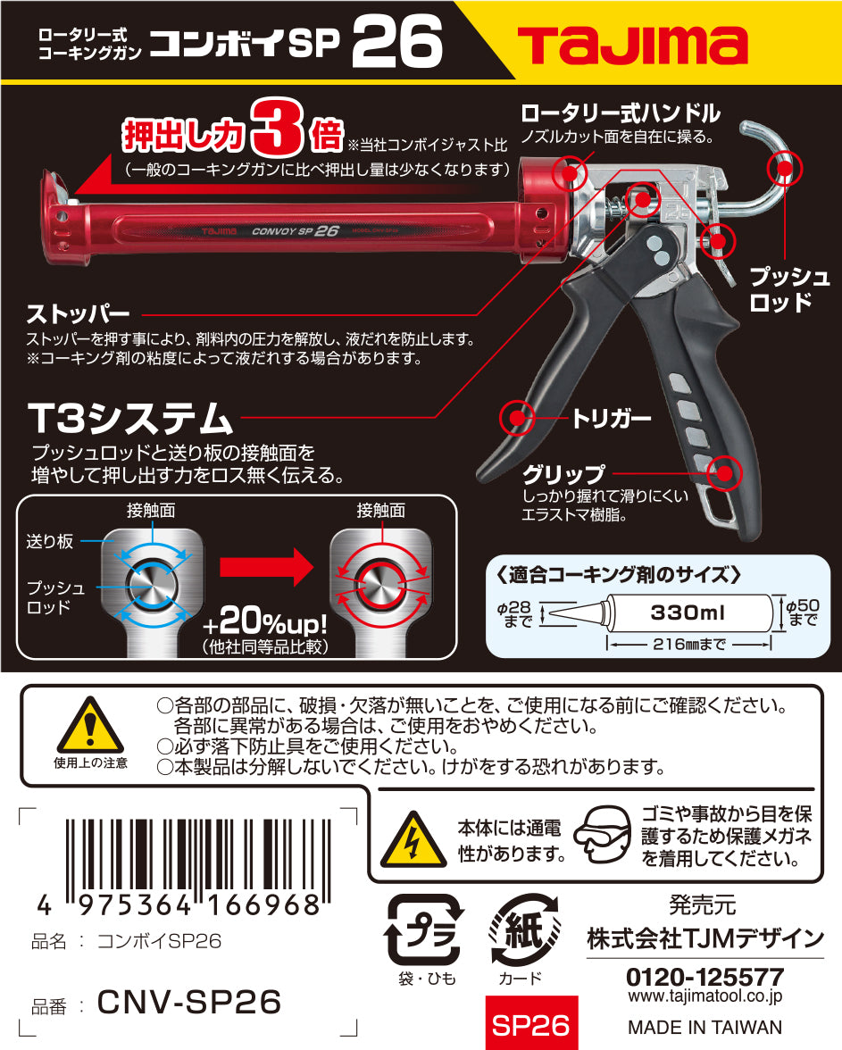 - 適合コーキング剤サイズ:筒長さ216mmまで φ50まで 容量330ml